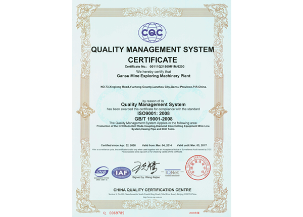 质量管理体系认证证书(英文)