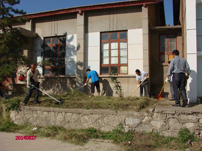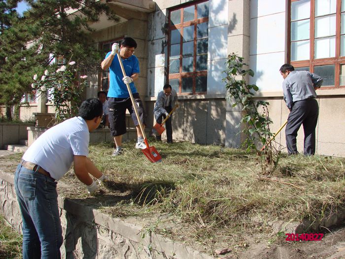 2014年8月27日,研发中心机关党支部组织全体党员开展义务劳动,对厂区内杂草及卫生死角进行了清理。图为党员干部热火朝天的劳动场面。
