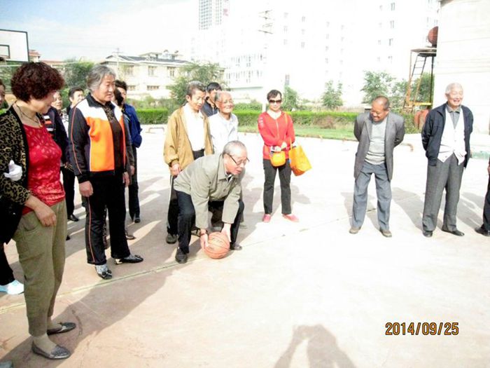 秋风送爽、菊花绽放,在“国庆节”、“重阳节”到来之际,2014年9月25日,甘肃探矿机械研究开发中心组织百余名离退休职工欢聚在篮球场上,劳人科副科长刘占培同志向离退休职工通报了近期情况,并向离退休职工致以节日的问候,对他们退休后积极关心单位的发展,表示衷心的感谢,祝愿他们身体健康、合家幸福。随后举行篮球击物趣味比赛,离退休职工精神抖擞、兴致勃勃的参与其中,共同分享快乐。