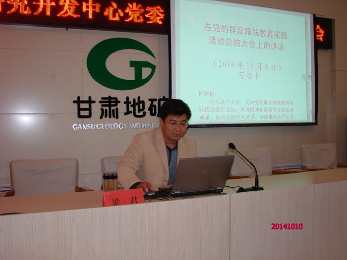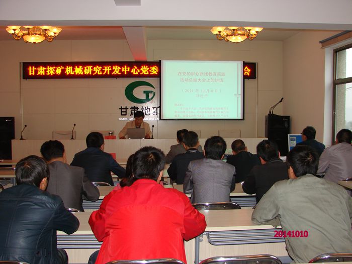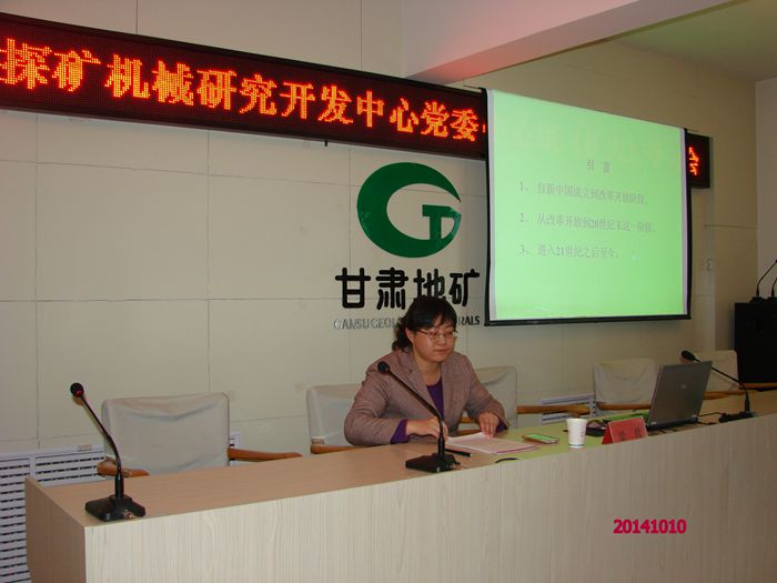 014年10月10日,甘肃探矿机械研究开发中心召开党委中心组(扩大)学习会,总会计师梁君作了《成本管理》专题讲座,党委书记孟永鹏全文传达了《习近平总书记在党的群众路线教育实践总结大会上的讲话》。