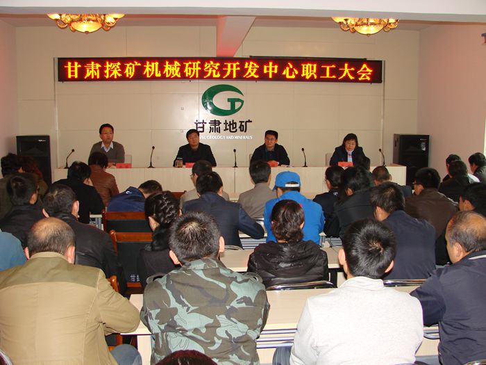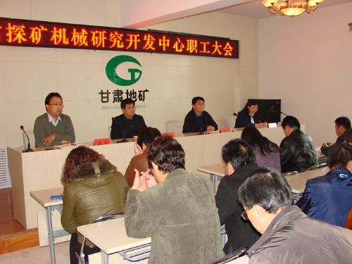 2014年11月4日,甘肃探矿机械研究开发中心召开了全体职工大会。中心主任曾永刚同志在会上向全体职工通报了近期生产经营情况,主任曾永刚和党委书记孟永鹏对下一步工作提出了明确要求。