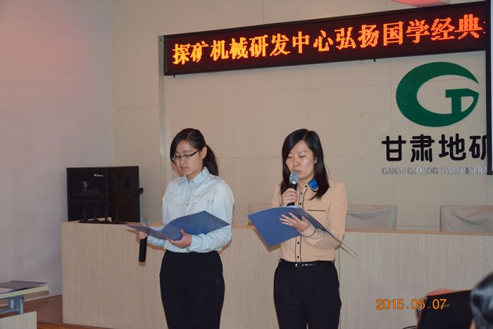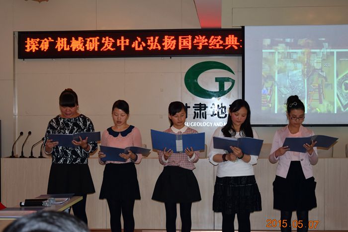 “大学之道,在明明德,在亲民,在止于至善。”探矿机械研究开发中心庆祝五四青年节活动在国学经典—《大学》的诵读声中拉开帷幕,来自不同岗位的团年青年为五四青年节献上了一场精神盛宴。 古琴悠扬,诗歌清脆,一幅幅古今经典画卷在这里缓缓铺陈,有教育治学的《劝学》、《为学》,有厚德载物的《道德经》,有做事先做人的《弟子规》,有孤篇盖全唐的《春江花月夜》,有满怀抱负的《将进酒》,有修身治家的《朱子治家格言》,有饱含革命激情的《沁园春·雪》、《沁园春·长沙》……,团员青年个个意气风发,在音韵视频的陪衬下,押着千古经典的韵脚,踏着婉约激昂的节拍,回味着国学的古典风雅和独特魅力,深深的品味着蕴含其中的理想信念、道德理念、人生价值。 “少年智则国智,少年富则国富,少年强则国强!”慷慨激昂的爱国名篇《少年中国说》,让团员青年抚今追昔,心潮澎湃,精神振奋,激发起了对祖国和甘肃地矿灿烂明天的美好憧憬。中国梦是国家的梦、民族的梦,也是每个中国人的梦,同样是地质青年的梦,《我的中国梦》——因为有梦,而去追求,梦在前方,路在脚下。诵读现场掌声不断,让在场的所有人油然而生一种激情澎湃的爱国情怀,沐浴着国学经典与民族精神的双重陶冶。 一首由团员青年自己创作的《五四之歌》,把“五四”精神的传承发扬,把团员青年与单位同呼吸共命运的责任担当,把培育和践行社会主义核心价值观的言行举止诠释的生动具体,引起了全体团员青年的共鸣。 “我们有火焰般的热情,战胜了一切疲劳和寒冷。背起了我们的行装,攀上了层层的山峰,我们满怀无限的希望,为祖国寻找出富饶的矿藏。”经典浸润心灵,智慧点亮人生,歌声催人奋进。作为地质青年,我们要弘扬国学经典文化,培育和践行社会主义核心价值观,把“三光荣”精神内化于心、外化于行,努力学习,勇于担当,砥砺奋进,顽强拼搏,用青春谱写美好的地质赞歌。