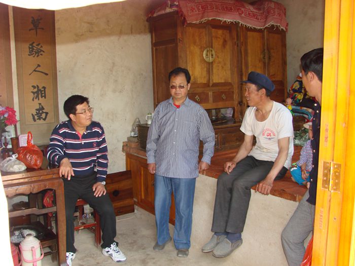 2015年6月15日,探矿机械研发中心党委书记孟永鹏带领双联办主任刘占培、联络员蒲建子、杨志韵等同志与苏合乡党委副书记晚大平、乡综治办主任刘玉玺等同志一起在武湾村开展入户摸底调查工作,并对联系户进行了慰问。