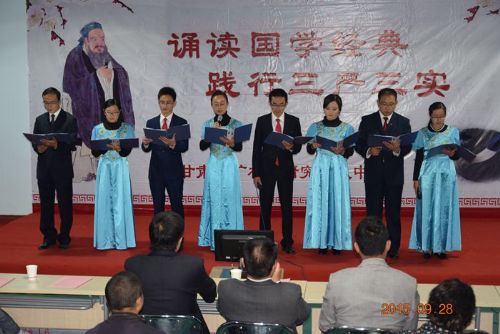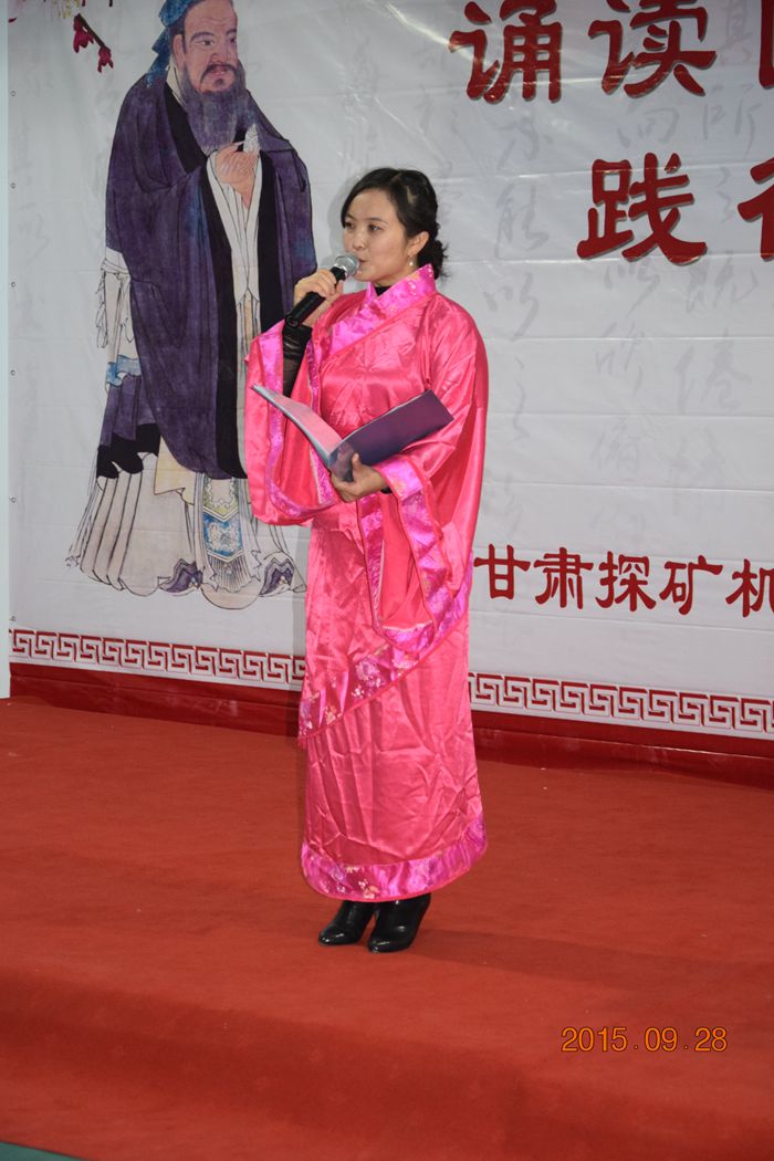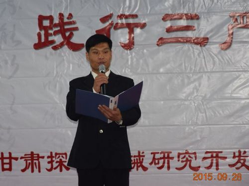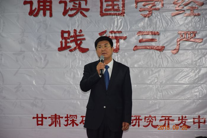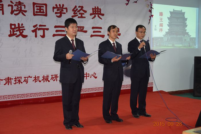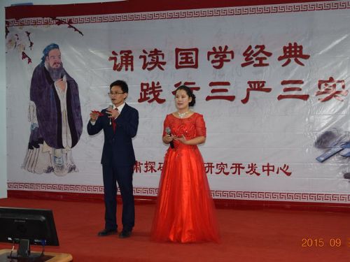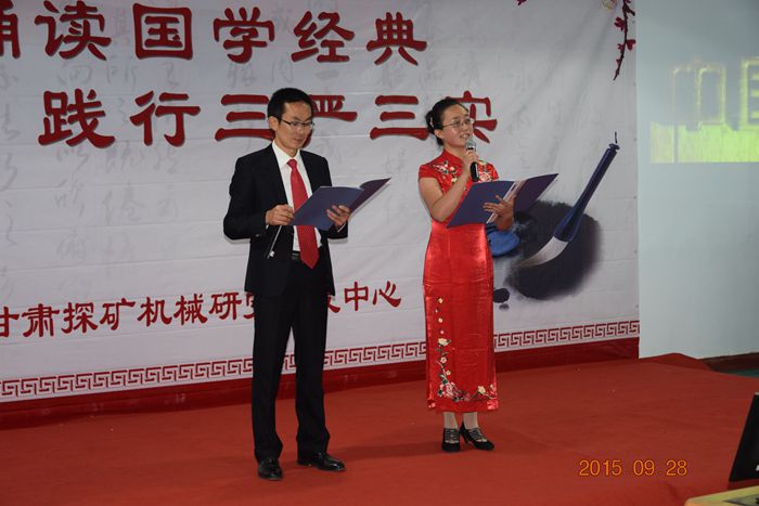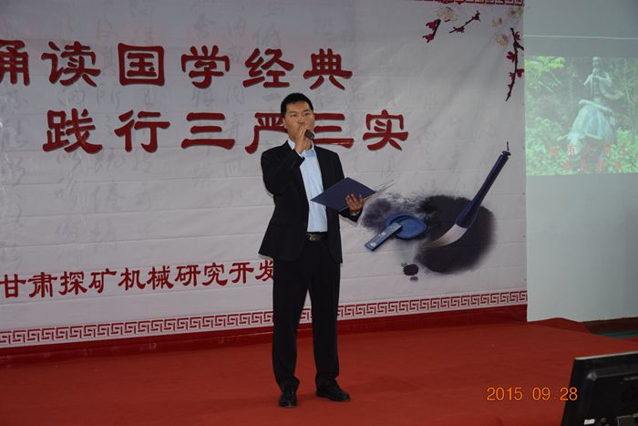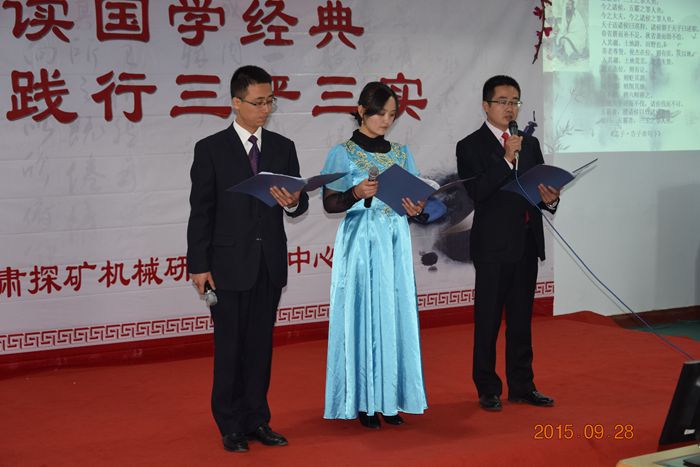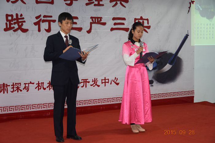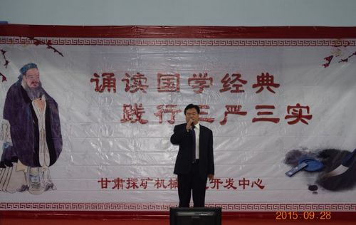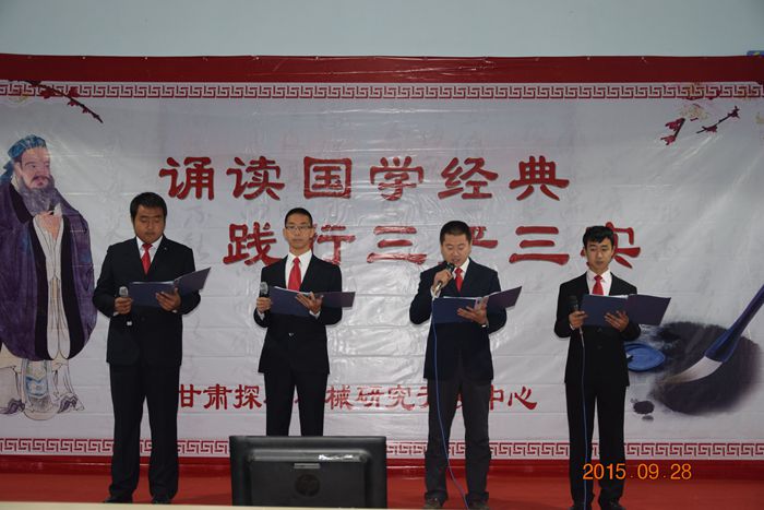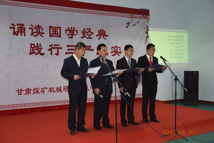 9月28日,甘肃探矿机械研究开发中心全体干部职工、部分离退休老同志和职工家属隆重集会,举行了“诵读国学经典,践行三严三实”大型诵读活动。
