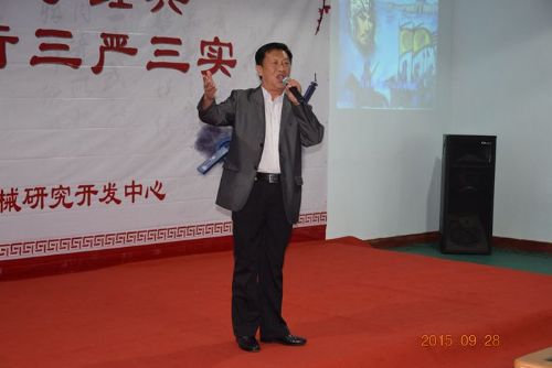 诵读结束时,主任曾永刚作了总结讲话。曾永刚指出,本次诵读选材立意高远,勤学苦练,精心准备,在职职工、离退休职工积极参与,本身就是一种精神的传承,思想的传承,文化的传承,体现出中华传统文化的巨大魅力。以儒家思想核心为主体的中华文化,博大精深,“忠诚、勇敢、孝道、诚信、宽厚、包容”,这些价值理念是维系中华民族生生不息的不竭动力,也是当下维持社会稳定,构建和谐社会的文化基础,是我们共同的精神家园。社会主义核心价值观和全球人类社会伦理,也正是在坚持一种非暴力与尊重生命的文化,坚持一种团结的文化,坚持一种公正的经济秩序,坚持一种宽容的文化,坚持一种诚信的生活,坚持一种男女之间权力平等与伙伴关系的文化。也正是坚持这样一些文化理念,组织了这次以“诵读国学经典,践行三严三实”为主题的节目演出。曾永刚强调,探矿机械研发中心正处在市场低迷和面临一系列改革的关键时期,建设一支具有深厚文化底蕴的高素质干部队伍,是我们践行三严三实,促进队伍团结,增强团队凝聚力的根本保证,也是我们克服困难,走出困境的坚实思想基础。要通过开展这样的一些文化活动,提振信心,鼓足勇气,用我们自己勤劳的双手,以务实的工作作风,不断促进物质财富的增加,最终推动生活水平的全面提高。