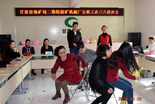 3月8日上午,在106个“三八”国际劳动妇女节来临之际,探矿机械厂为丰富女职工的业余文化生活,开展了女职工庆“三八”联欢会。全体在岗女职工在厂办公楼四楼会议室齐聚一堂,进行了击鼓传花展才艺、趣味游戏踩气球、抢凳子、吹乒乓球等形式多样的联欢活动,副院长潘攀、副总工巩亚平等领导到现场向全体女职工表示节日的祝贺,副院长潘攀高度评价了女职工为单位的建设与发展做出的重要贡献,赞扬了女职工为家庭的辛苦付出,同时也鼓励广大女职工继续发挥半边天的作用,努力工作,勤俭持家,为单位的发展做出新贡献。通过“三八”妇女节联欢活动,既展现了女职工健康活泼的身姿,又展示了女职工团结协作的精神风貌,增强了女职工的向心力和凝聚力。