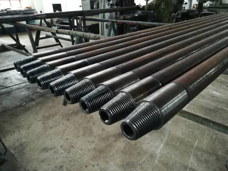φ76潜孔钻杆由杆筒、公接头、母接头组成,杆筒端面与公接头、母接头的端面以摩擦焊焊接连接。潜孔钻杆主要应用于矿山、采石场、高速公路等工程钻凿爆破孔、护拦孔、山体加固、锚固等工程孔,地热空调孔、水井孔等领域。
